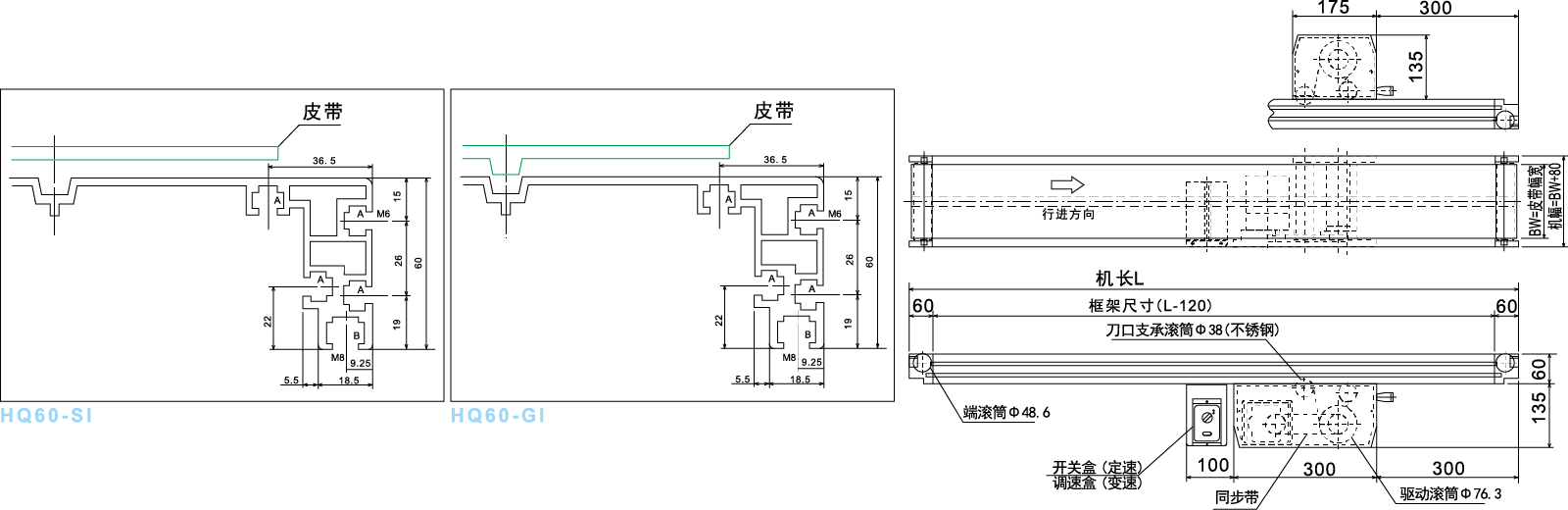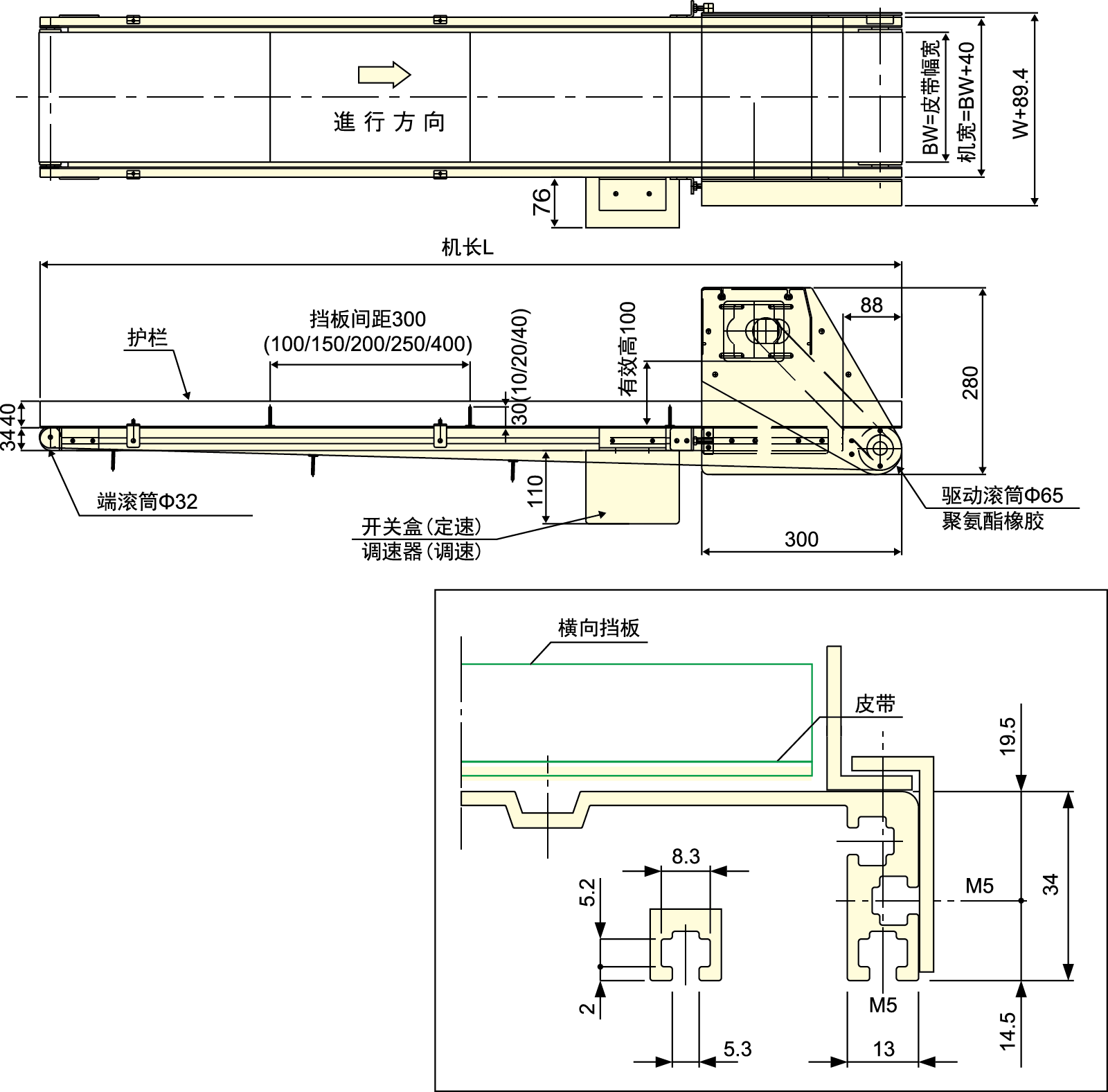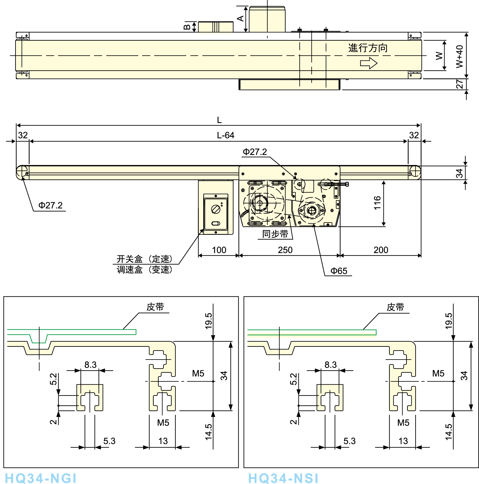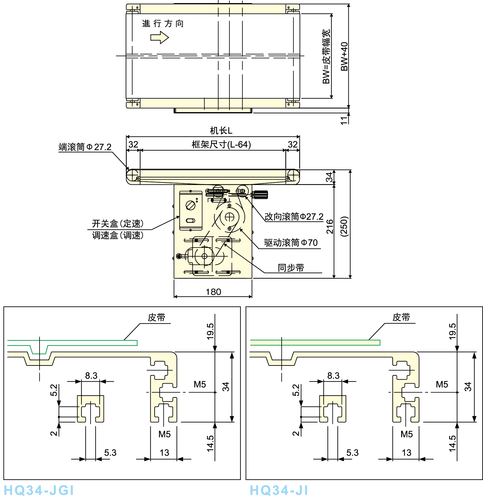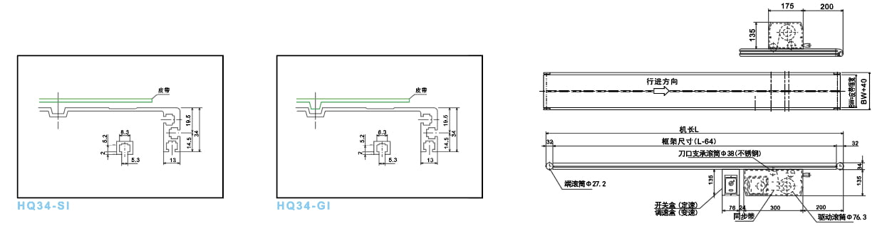 ● Ez a 34 mm -es szíj -szállítószalag standard típusa, a vezetési központot a vezérműszíj mozgatja.