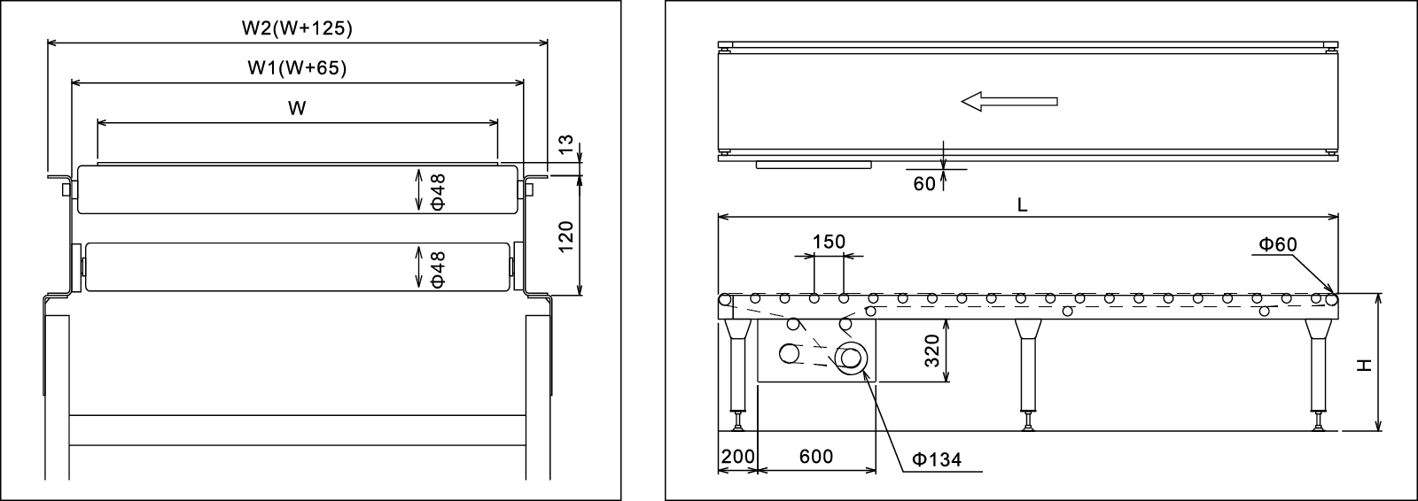 | Hossz | L (mm) | 1200 ~ 20000 | 4000 ~ 15000 | 1200 ~ 25000 | 4000 ~ 20000 |
