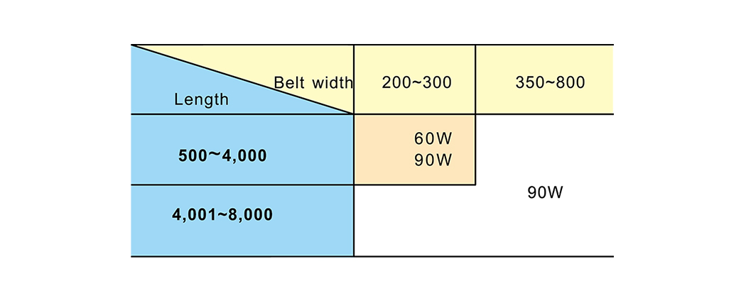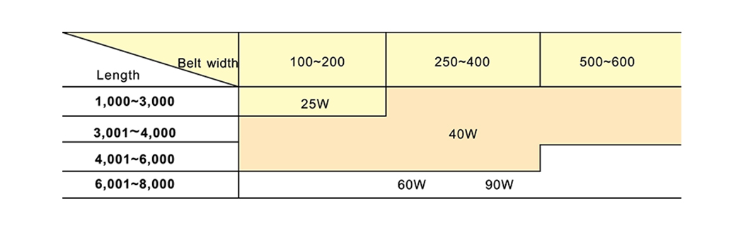 | Teljesítmény \ öv szélessége | 100 ~ 500 |