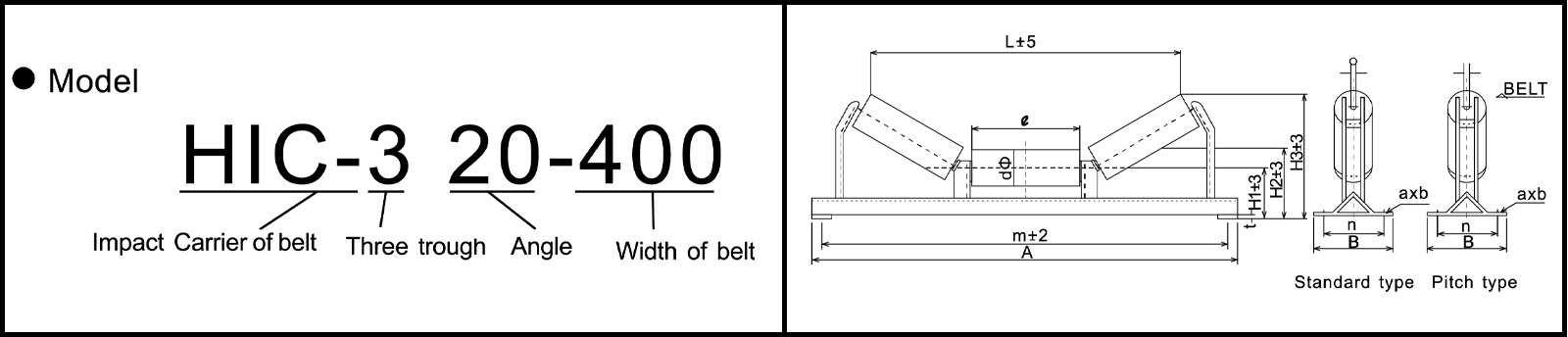 A három vályú hordozóhenger a vályúszalag -szállítószalagok kulcsfontosságú eleme, elsősorban homok, ásványi anyagok stb. Szállításához használják stb. Az anyagok közé tartozik a standard acél, a gumi bevonatú, polimer vagy rozsdamentes acél lehetőségeivel a különféle igényekhez.