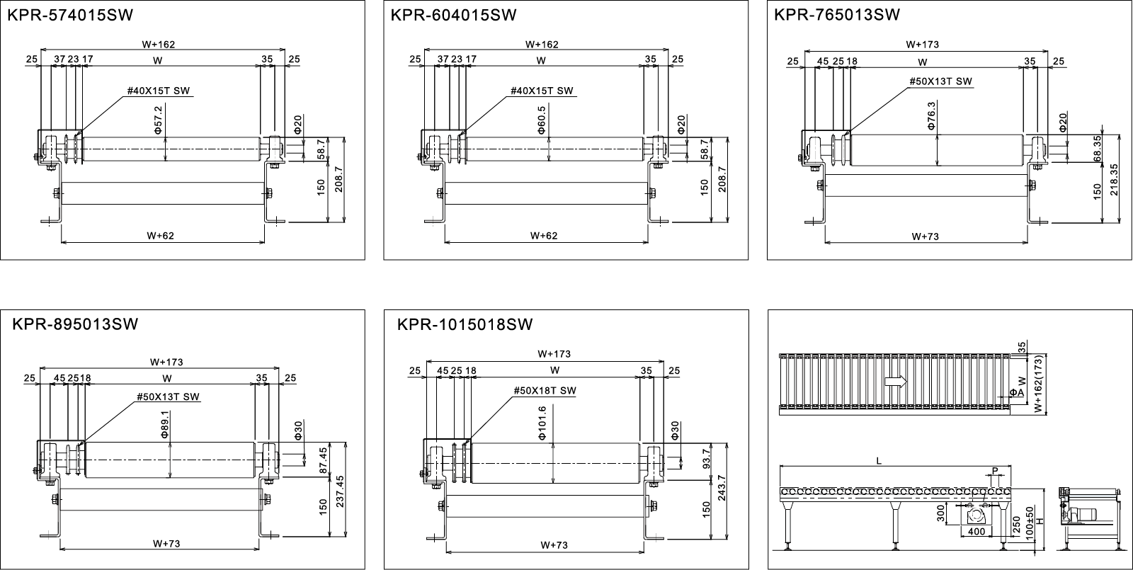 | Width of conveyor | W 150 | W 150 | W 150 | W 150 | W 170 |