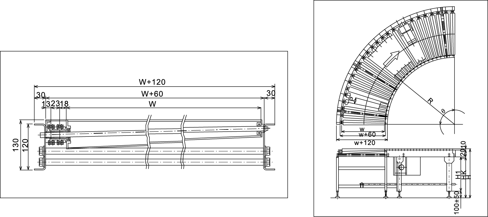 Összehasonlítva a meghajtott görgős szállító lánccal. azok sima működésük, alacsony zajjal jellemzik; A gazdaság alkalmazható, költséghatékony; Beltéri környezethez alkalmas.
