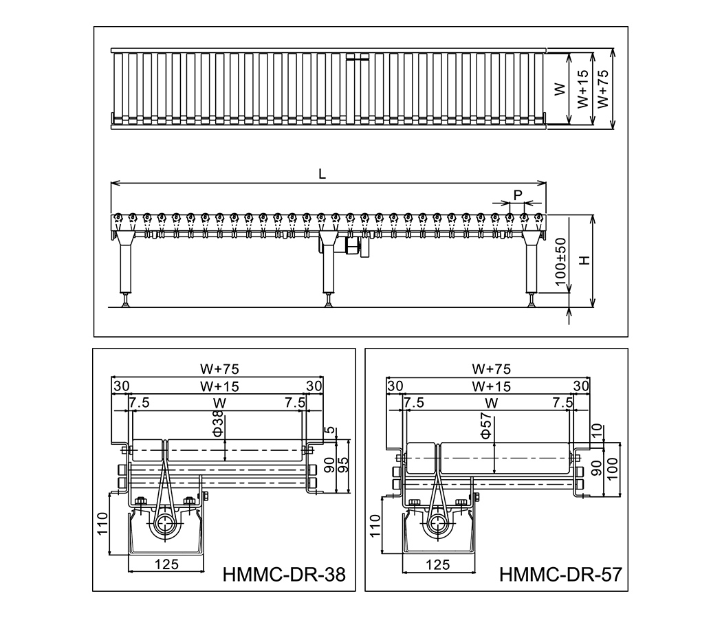 Roller átmérő: 038 mm 、 042 mm 、 057mm 、 060mm
