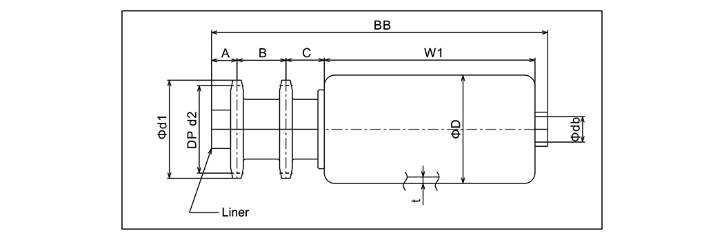 | Beír | Hengerméret | Henger szélessége | Hengeres anyag | Hordozó | Tengely átmérője | Bélésméret | Lánckerék | D1 | d2 | A | B | C | W1 | Bb |