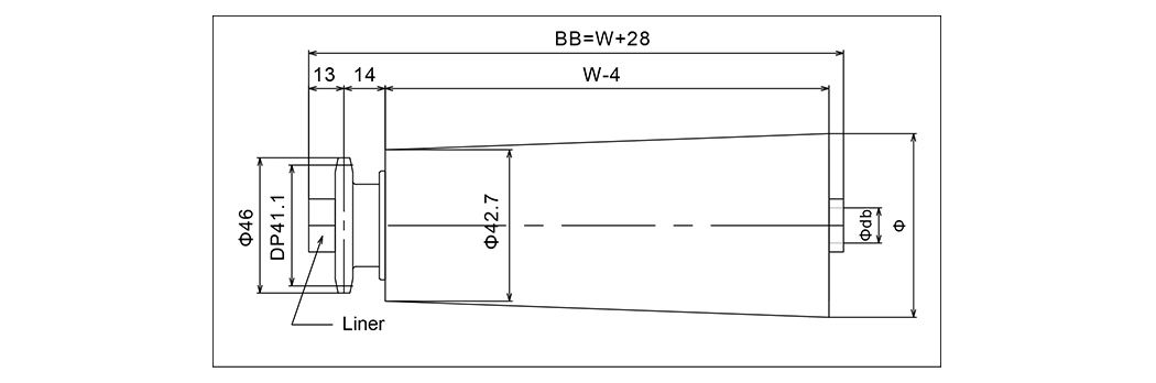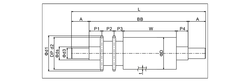 | Beír | Hengerméret | Hengerszélesség | Hengermatenál | Bearng | Tengely átmérője | Lánckerék | D1 | d2 | d3 | A | L | Bb | P1 | P2 | P3 | P4 |