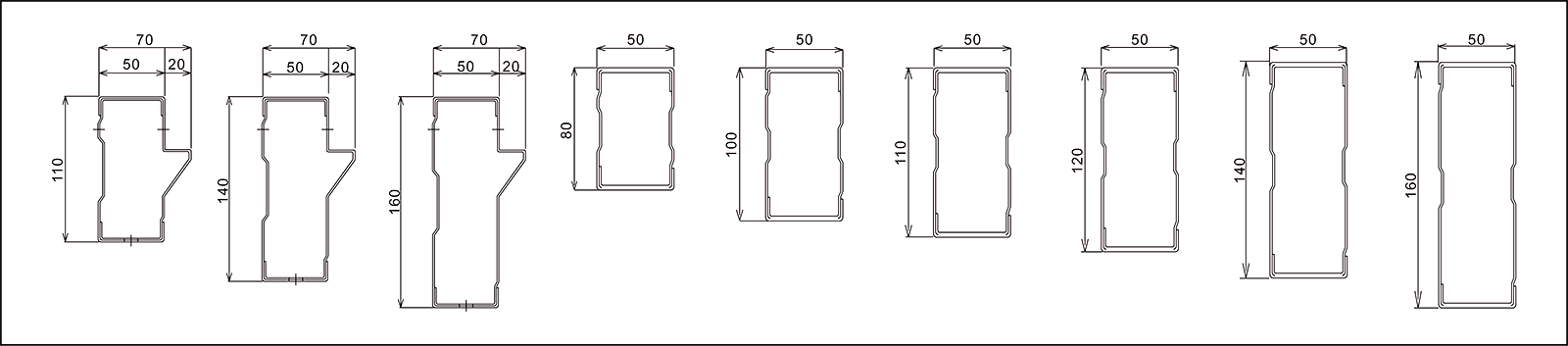 | Főoszlop | 80*4T négyzet alakú cső | 100*4T négyzet alakú cső | 120*6T négyzet alakú cső | 140*6T négyzet alakú cső |
