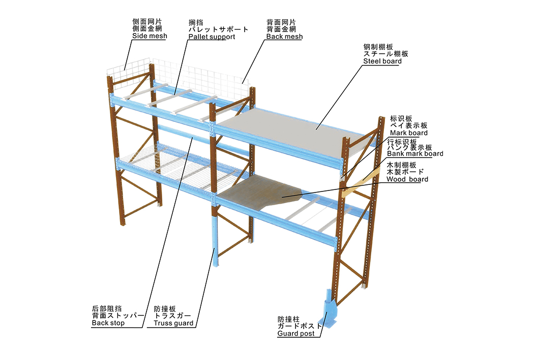 Könnyű szerkezet Az egyszerű telepítés, a keret és a kerék-szállító beállítható a megfelelő helyre. Nagy vagy kis mennyiségű áruk tárolására alkalmas.