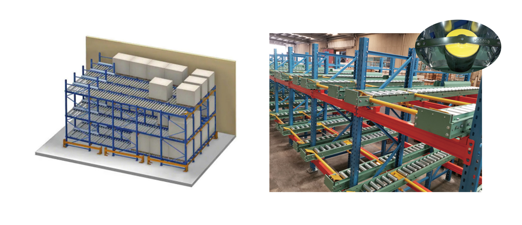 A gravitációs típusú polcok és az önálló hengeres polcok szerkezete hasonló a gerenda típusú polcokhoz, de a nem motoros hengeres síneket a polcok gerendáira telepítik, és a hengeres sínek dőlési szöge általában 2-5 °. A gravitációs polcok ezt a dőlési szöget és maguknak az áruk súlyát használják, hogy automatikusan magasról alacsonyra csúszhassanak. A gravitációs polcok alkalmasak az In, Out és a nagy áramlású termékekre. Fő tulajdonságaik a magas helyfelhasználás, és a polc nem igényel külső energiát. Különösen alkalmasak a nagy raktárkezeléshez, például a hidegtároló és a logisztikai elosztó központokhoz, és rendes kiegyensúlyozott targoncákkal működtethetők.