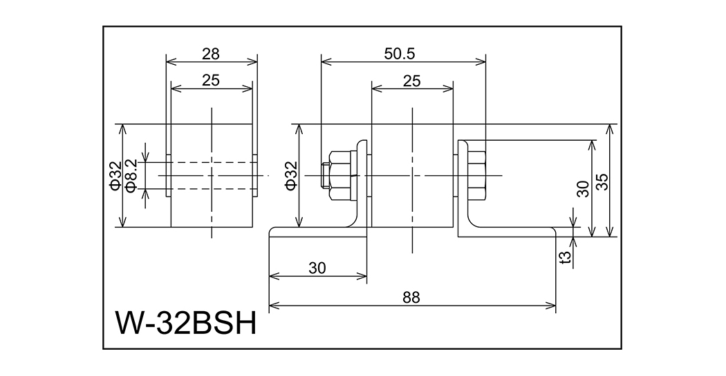 | W-32BSH | 32x25x8,2x28 | M8x45L | 30x88x30x50.5x3.0 | 35 | 1000 · 2000 · 3000 | 40 · 70 · 100 | 90 | L |