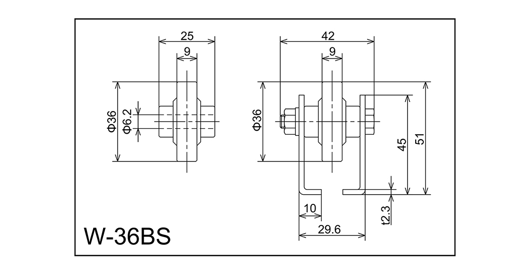 | W-36BS | 36x9x6,2x25 | M6x38L | 45x29.6x10x42x2.3 | 51 | 1000 · 2000 · 3000 | 50 · 75 · 100 · 150 | 40 | A |