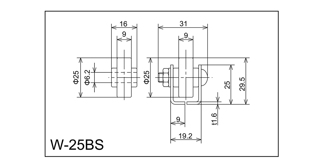 | W-25BS | 25x9x6,2x16 | M6x27L | 25x19.2x9x31x1.6 | 29.5 | 1000 · 1500 · 2000 | 30 · 35 | 30 | A |