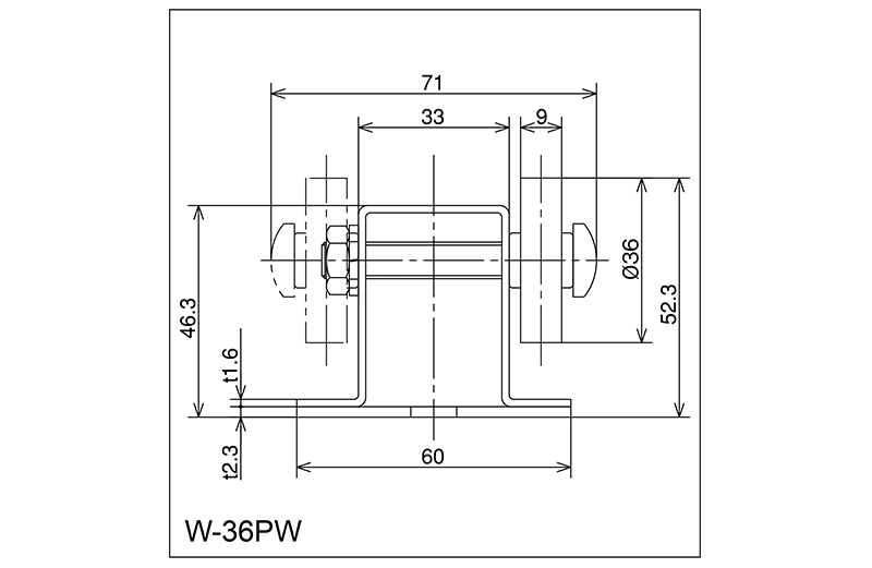 | W-36PW | 36 × 9 × 8 × 14 | M8 × 55L | 46,3 × 60 × 33 × 71 × 1.6 2.3 | 52.3 | 1800 · 2400 · 3000 | 50 · 75 · 100 · 150 | 10 | Poom |