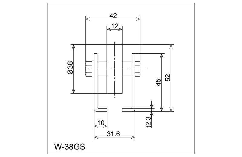 | W-38GS | 38 × 12 × 6 × 27 | M6 × 38L | 45 × 32,6 × 10 × 42 × 2,3 | 52 | 1800 · 2400 · 3000 | 50 · 75 · 100 · 150 | 30 | POM |