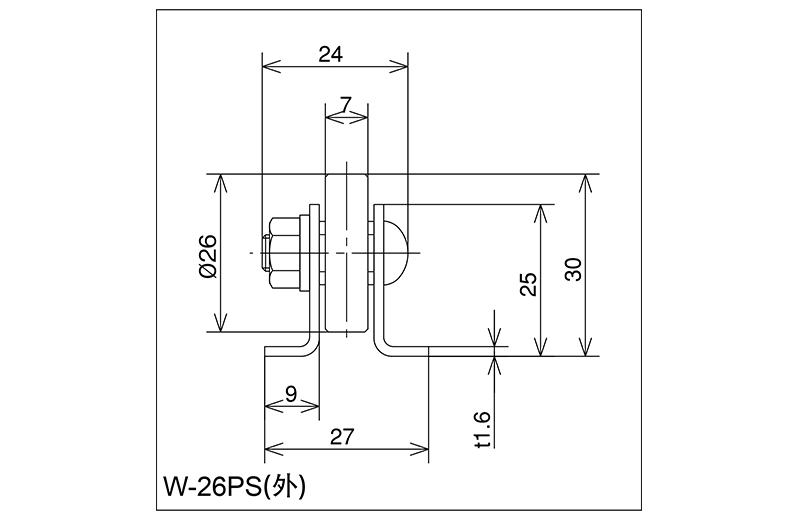 | W-26PS (belül) | 26 × 8 × 6 × 16 | M6 × 25L | 25 × 19,2 × 9 × 29 × 1,6 | 30 | 1000 · 1500 · 2000 | 30 · 35 | 30 | POM |